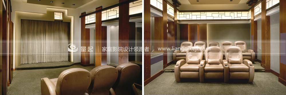 同色系的协调搭配,用沉闷而低调的棕色同类色打造出富有艺术感和文化韵味的影院。