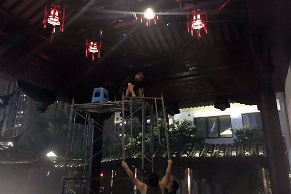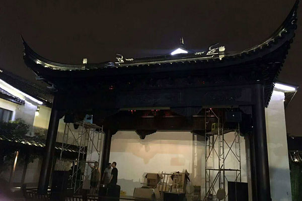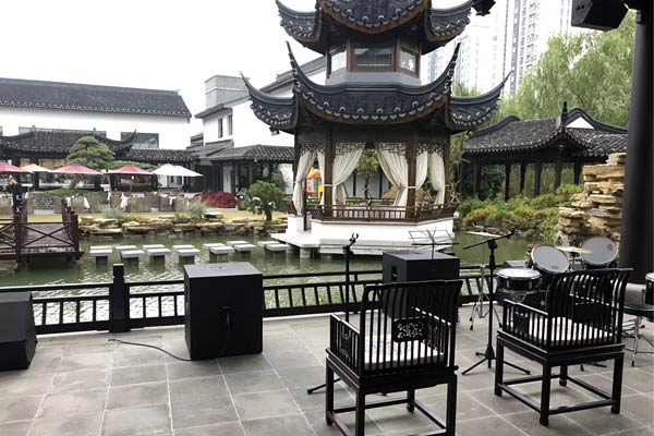项 目 名 称 :苏州美豪雅致酒店舞台音响灯光工程;项 目 地 址 :苏州工业区松涛街1088号斜塘老街42、43、44幢;安 装 环 境 :户外露天;房 间 尺 寸 :长:17.6m,宽:8.55m,高:6.16m。