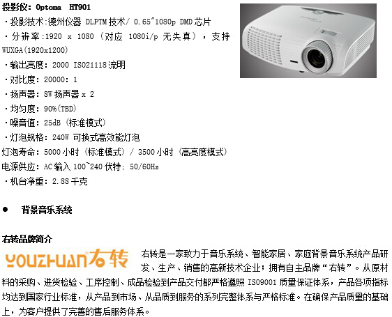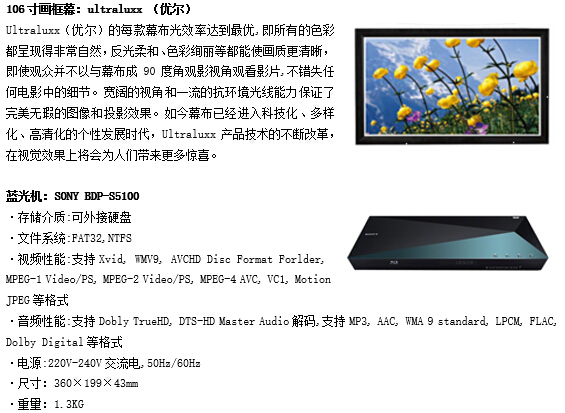 考虑到将视听室空间的最大化利用,同时达到最佳的视听效果,将采用7.1道影院音箱。投影幕布方面,综合考虑前墙宽度,观影距离,房间高度,以及观影效果,建议幕布德国优尔106寸画框幕。以下是我们为本案推荐选择的主设备。