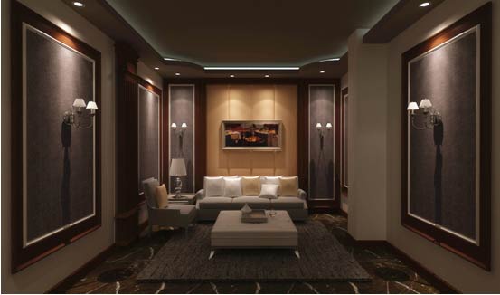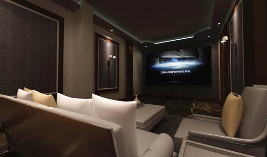 点击电影模式,智能家居控制系统将开启电影模式,打开投影和蓝关机以及功放、关闭视听室主灯,将四周的射灯调节为30%的亮度,灯光慢慢暗下来,电影开始了!同时建立家庭影像库,随时与家人一起观看记录生活经历的照片视频等与家人朋友进入回忆时刻。