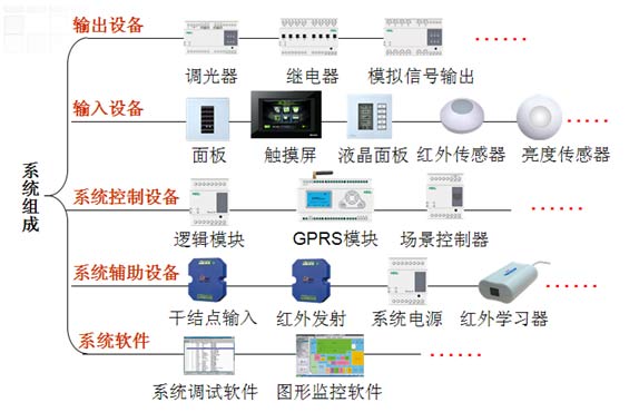 控制方式灵活多样,用户可以选择液晶面板、手感舒适的按键面板、普通开关面板、彩色触摸屏、遥控器、自动逻辑、时间定时、以及手机远程制等方式去控制组合的场景或是一个独立的设备。具体的控制方式根据用户实际需求或系统功能设计来确定。