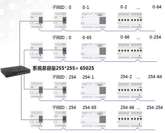 本系统采用独立的485总线方式通信,使总线无论何时都处于最佳状态。同时配合HDL独有的软硬件相接合的智能CSMA/CD控制技术,确保系统无论总线设备多少,总线距离长短都可获得最大的传输速率。系统可以通过总线/以太网交换机联网及扩展,将分散的子系统组合成一个庞大的功能系统。