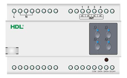 智能照明控制系统的功率输出模块,有4个输出回路。它自带场景控制部分,其本身也设有紧急直通控制部分可产生直通开关控制信号。该模块采用485总线通讯方式,可实现远程编程和管理,功能齐全,适用于智能化照明领域。