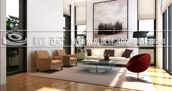 智能灯光主要是对全宅灯进行有序化人性化科学化的控制。通过人体移动感应调节灯光开关,卧室卫生间设置起夜模式,晚上起夜时壁灯亮度调整为30%,以免刺眼。靠窗位置,安装有一个亮度感应器,室外自然光亮变暗时,房间的灯光能自动调亮,让照度恒定,保护主人的视力。电动窗帘根据场景模式以及阳光照射房间明亮度去自动调整窗帘开合程度。