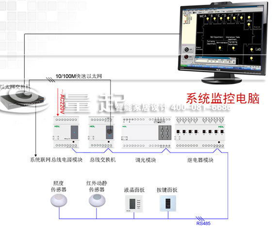 本项目选择的是河东模块化系统,本案主要是对灯光、电器、安防等进行系统集成控制。所以本套系统相对简单。周女士是一个讲究效率、追求完美的人。本控制系统对她而言节约了很多的时间,同时也提高了生活质量。
