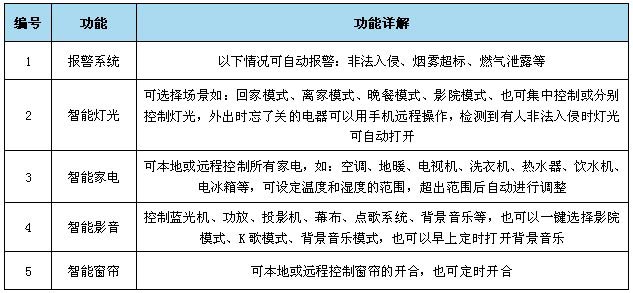 工程师在相应的客厅、卧室、走廊、厨房、餐厅设计安装了温/湿度传感器、烟雾报警器、燃气泄露报警器等报警装置,实现了自动调节房间温/湿度和异常情况自动报警的功能。这套系统的一个特点就是报警准确率高,因为我们选用的是高灵敏度的探测器,再加上完整的控制系统,提高了住宅的安全性,避免误报。