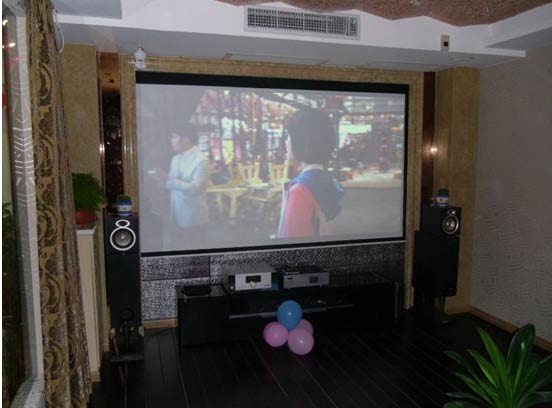 当刘先生需要看电影时,只需轻触中控主机显示屏上的“电影模式”或者安装在墙面的控制面板上的“电影”按键,智能家居控制系统将开启电影模式,打开投影和蓝光机以及功放,同时关闭视听室主灯,将四周的射灯调节为30%的亮度,灯光慢慢暗下来,电影就要开始开始了!