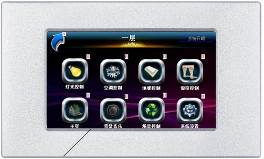 上图是一个智能家居触摸式控制面板,可以安装在走廊或者客厅的墙上,可以实现:灯光、空调、地暖、窗帘、背景音乐以及各种预设场景的控制。