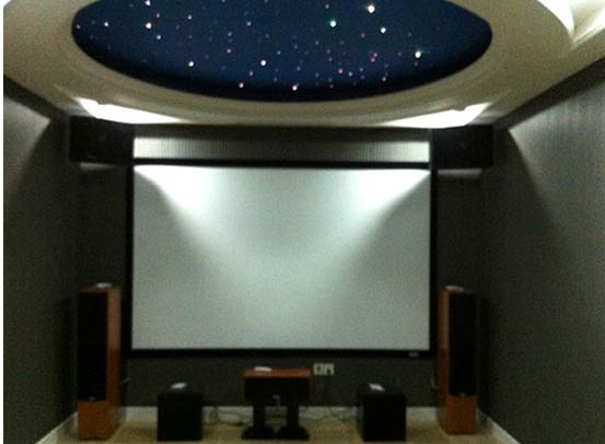 当要看电影时只需点击电影模式,智能家居控制系统将开启电影模式,打开投影和蓝光机以及功放、关闭视听室主灯,将四周的射灯调节为30%的亮度,灯光慢慢暗下来,电影就要开始开始了!