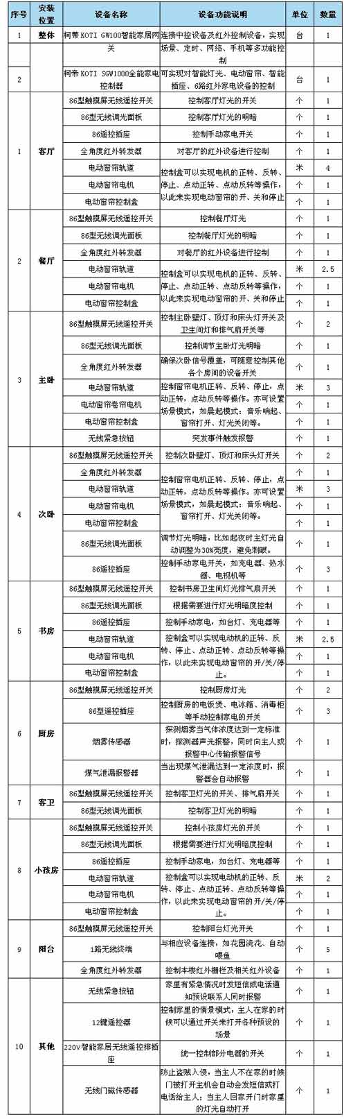 吴先生家是四室两厅195多平方米的大公寓房,位于宁波市江东区彩虹南路257号。吴先生在外企工作,比较追求生活品质,他在网上找到我们,希望我们为他打造一个智能的家居环境。根据吴先生的要求,我们主要选用了KOTI的产品,完成了一个包括门禁对讲、自动报警、智能灯光、智能家电、智能窗帘的智能家居系统。