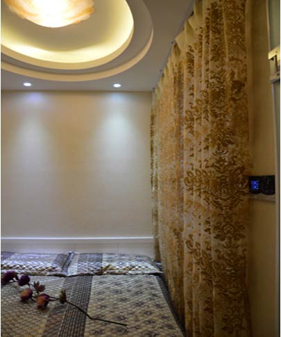 电动窗帘可以遥控控制,也可以手动控制。还可以定时开关,徐小姐设定工作日每天早晨7:30窗帘会自动打开,如果一觉醒来窗帘已经打开,那就说明该起床了;如果晚上睡觉前忘记关闭窗帘,等到预定的时间窗帘会自动合上,无声无息,不会吵醒主人。