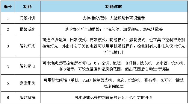 徐小姐智能家居系统具体包括门禁对讲、自动报警、智能灯光、智能家电、家庭影院、智能窗帘,可集中控制,可分别控制,简单方便快捷。远程控制合理调配了徐小姐的工作和生活时间,实现了省时省心节能的功能。