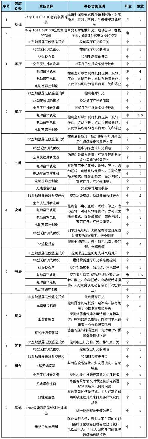 我们在每个房间都安装了温/湿度传感器、烟雾报警器、燃气泄露报警器等安全装置。温/湿度传感器可以根据所测得数值自动调节房间温/湿度、烟雾报警器和燃气泄漏报警器会对异常情况自动报警。