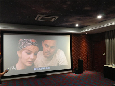 定制200寸画框幕的投影效果,专业的调试师把EPSON EH-TW9510C投影机的亮度调节的恰到好处。