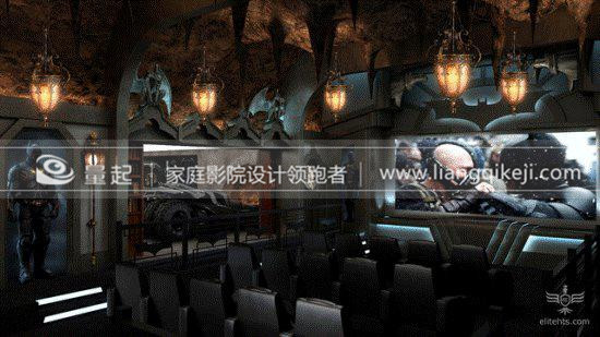 这个蝙蝠洞计稍微复杂一些,也是由Elite Home Theater Seating设计,吊灯融入了Wayne Manor的浮华复古设计,还附送全尺寸蝙蝠侠装甲和蝙蝠车一辆。价格嘛......我们来讨论下人生吧。