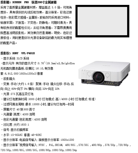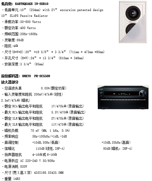 考虑到将视听室空间的最大化利用,同时达到最佳的视听效果,我们将采用9.2声道影院音箱。投影幕布方面,综合考虑前墙宽度,观影距离,房间高度,以及观影效果,建议幕布采用美国锐普200寸画框幕。以下是我们为本案推荐选择的主设备。