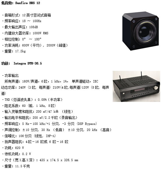 前置音箱摆位:前置音箱应尽量摆放在观众坐下后耳朵的高度,要注意前排座位会遮挡后排观众,如果前置音箱无法排成一条直线,那么垂直高度差应控制在60厘米内。有条件的用户尽可能使用透声幕,前置音箱的摆放应远离角落和地板,选择的位置应能提供均匀的前方声场,左右立体声音箱的夹角为45-60度,在立体结像和多声道分离效果间取得平衡。