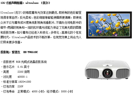 考虑到将视听室空间的最大化利用,同时达到最佳的视听效果,将采用7.1声道影院音箱。投影幕布方面,综合考虑前墙宽度,观影距离,房间高度,以及观影效果,建议幕布德国优尔135寸幕布。以下是我们为本案推荐选择的主设备。