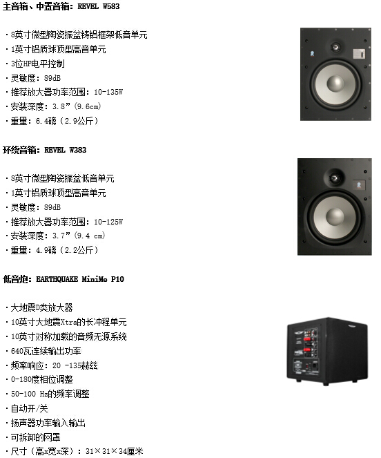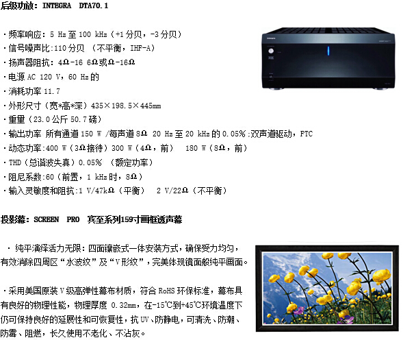 考虑到将视听室空间的最大化利用,同时达到最佳的视听效果,我们将采用9.2声道影院音箱,其中除低音炮外均为嵌墙式音箱。投影幕布方面,综合考虑前墙宽度,观影距离,房间高度,以及观影效果,建议幕布采用美国锐普159寸画框透声幕。以下是我们为本案推荐选择的主设备。