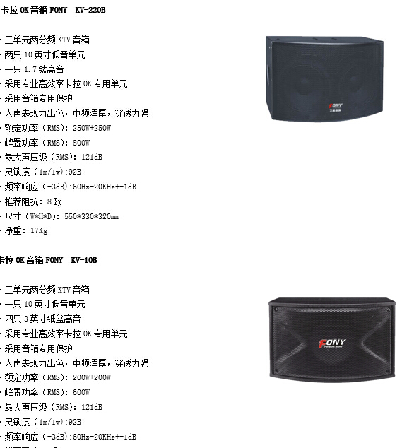 250*250W双10寸,1.3高音100磁,低音51芯140磁 |